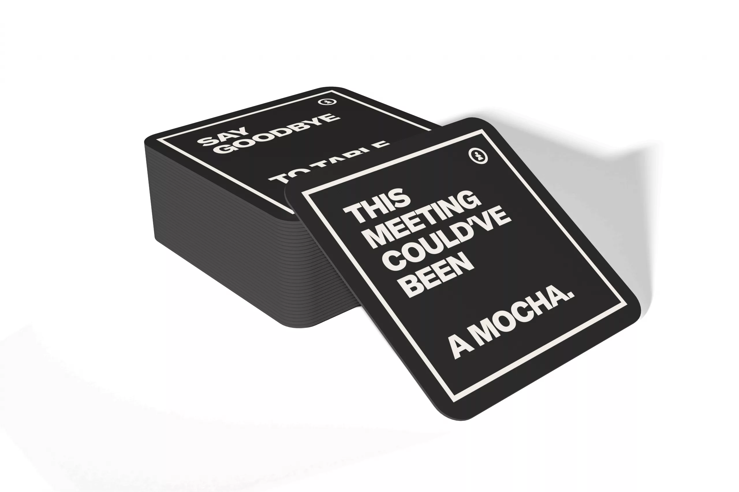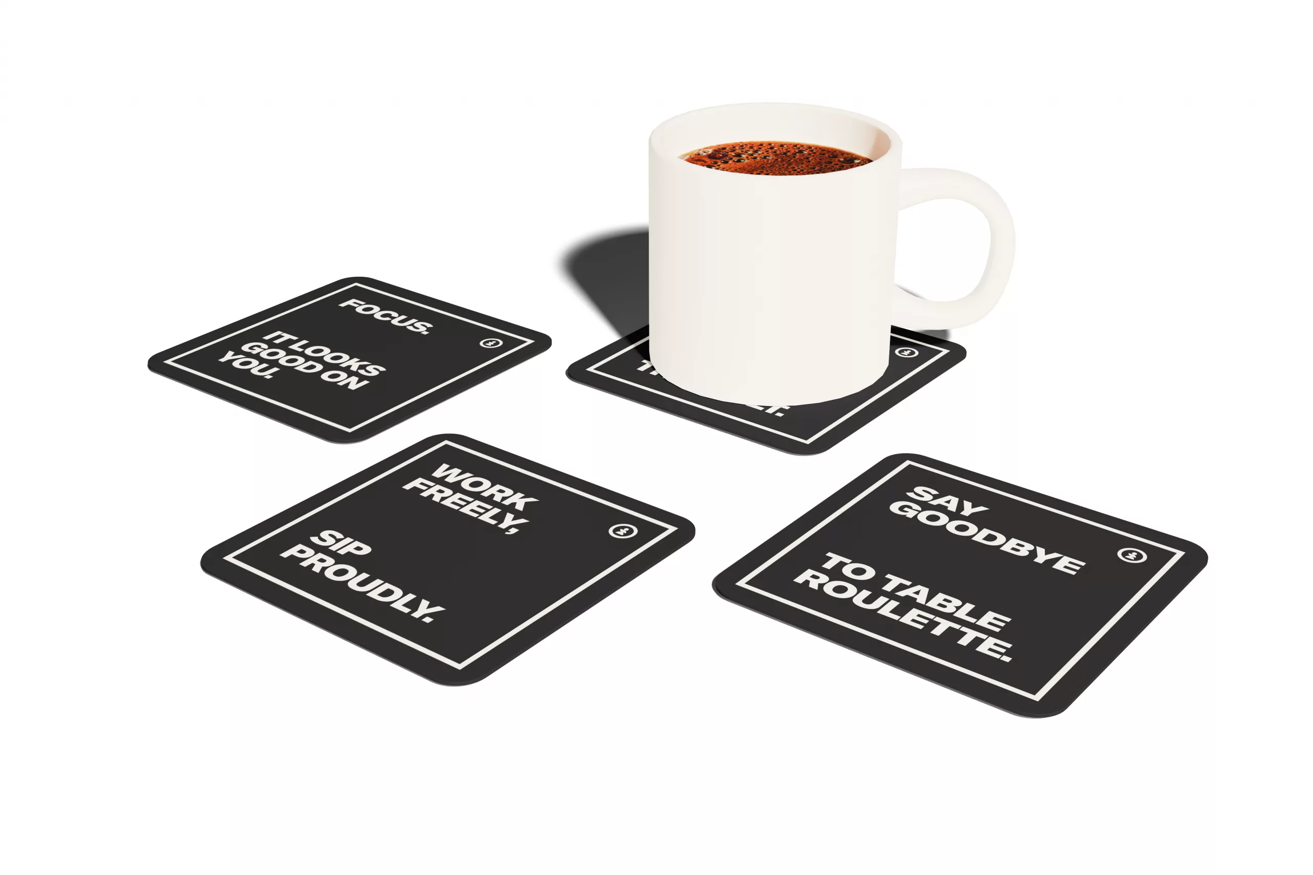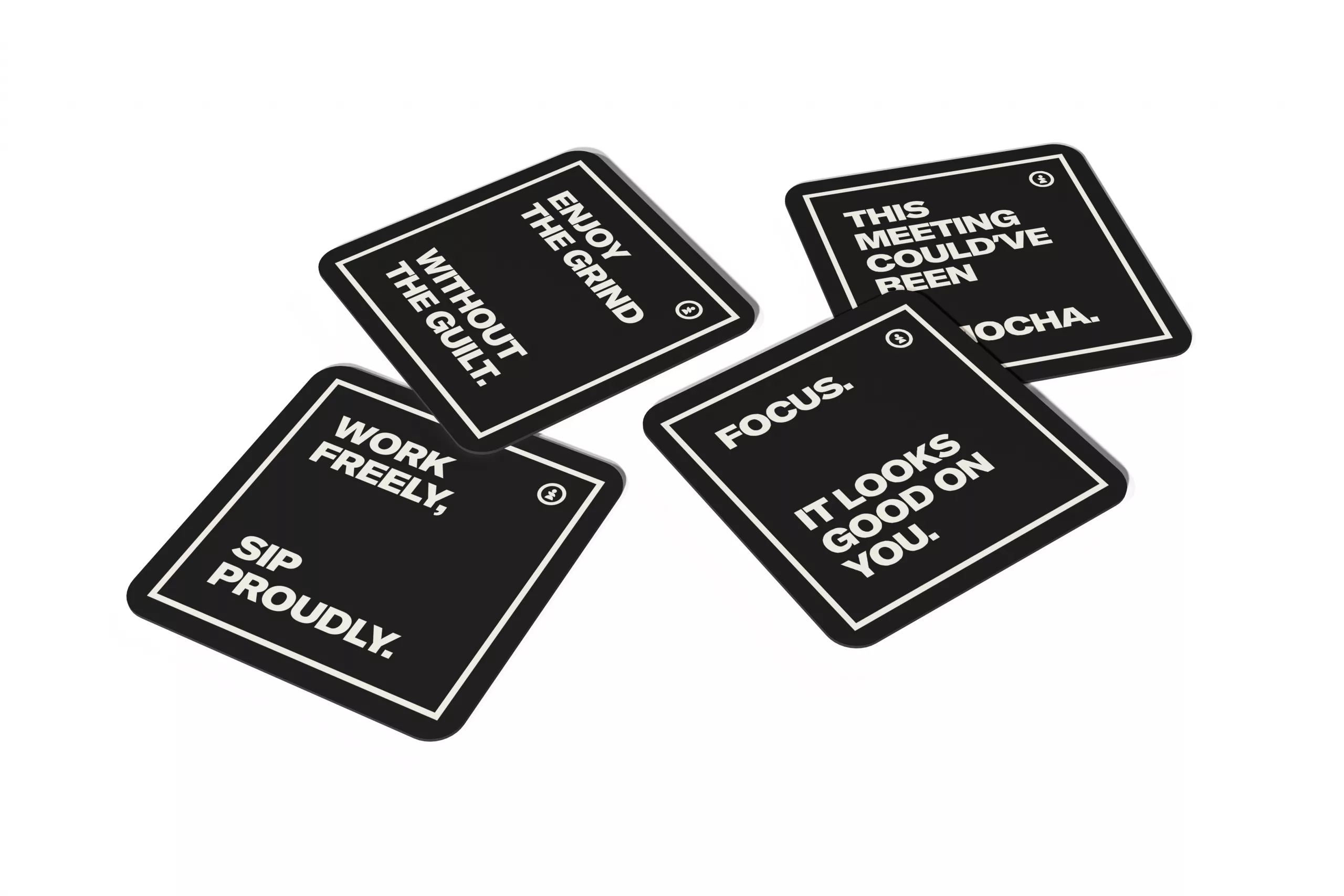 Selection of black colour coasters with a variety of slogans. Pack of 100.